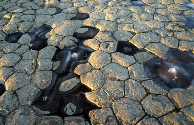 Just north of Kirkjubæjarklaustur, you have a very charming waterfall called Stjórnarfoss. When you drive there, you will have Kirkjugólf on your left side (Kirkjugólf = church floor), rocks that look like the floor of a church, basalt columns sliced down like tiles.