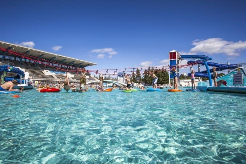 This swimming pool complex in Reykjavik is by far the biggest one in Iceland. There are 2 Olympic sized swimming pools, 1 big play pool, slides, beach ball, many hot tubs, saunas and there is also a luxurious spa and a Gym connected to the pool.