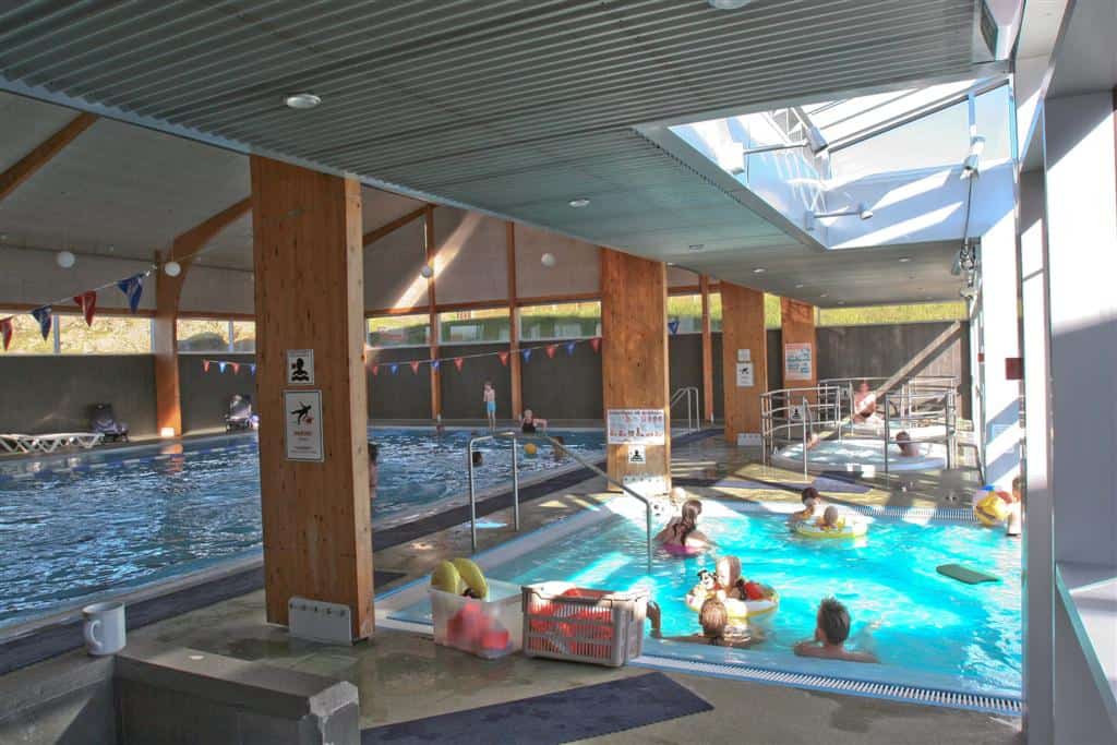 This swimming pool is half inside and half outside. It has a gym, sauna and a newly built indoor swimming pool with hot tubs, a small pool for children, and another small pool outside.