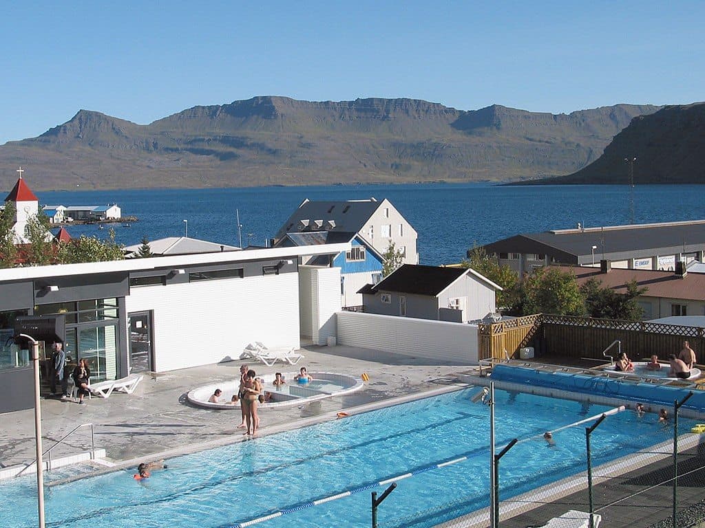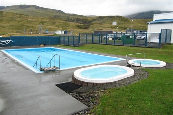 The swimming pool in Patreksfjörður is one of the more beautifully located pools in Iceland, with a view over the fjord over the pools edge. It has a gym too with the same awesome view.