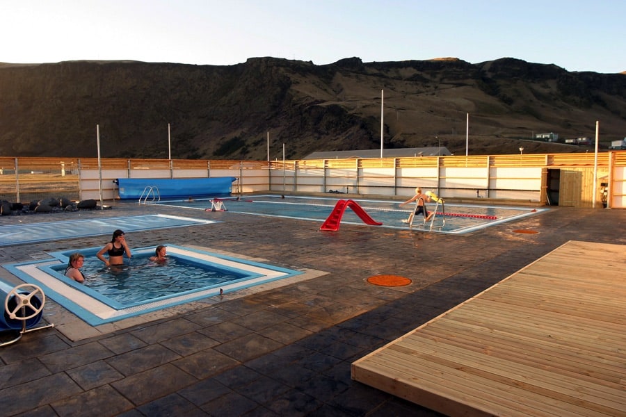 The swimming pool in Vík, close to Reynisfjara is a small but a delightful pool with hot pools, a perfect place to relax after a long day of exploring in the vicinity. It also have a small pool for the youngest kids and a small water slide too.