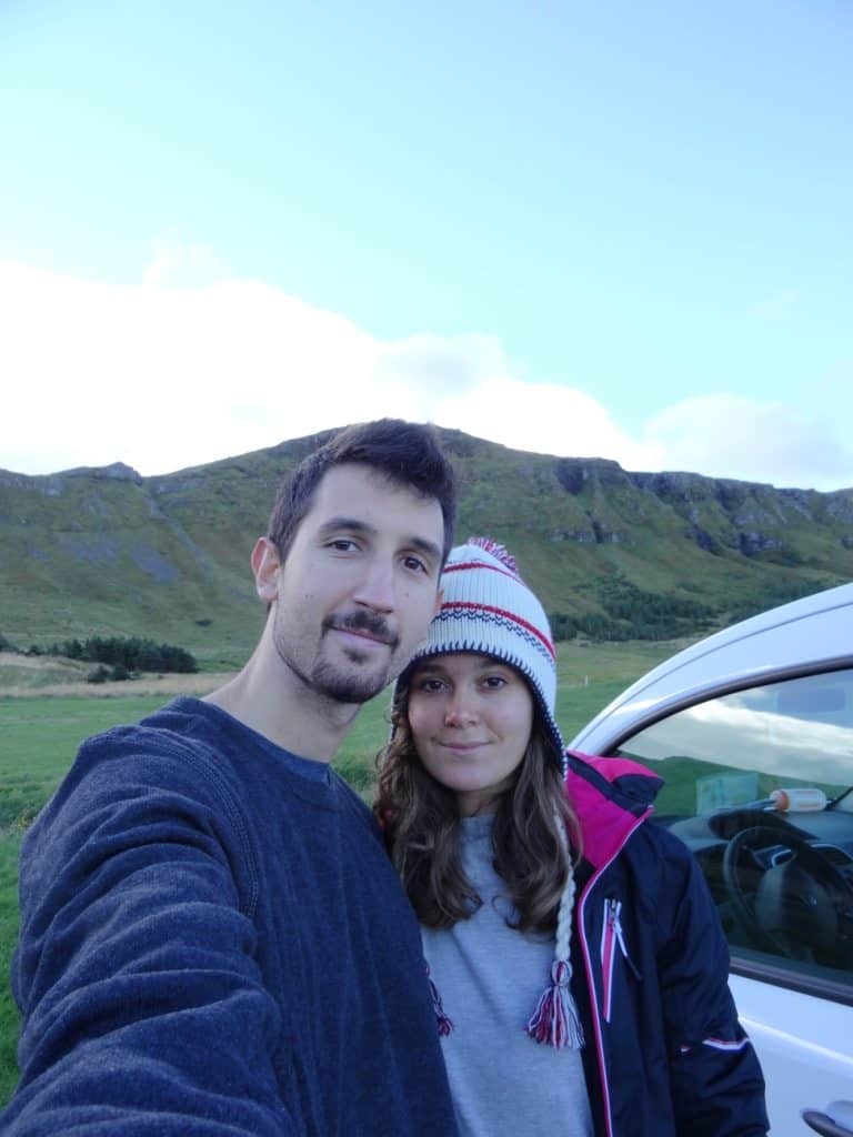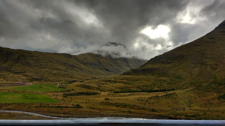 Leaving the north and with the impression that we should spend more days there, we drove through the East fjords to Höfn. It was a big contrast to what we previously saw in the north. Green mountains bathed by the sea and covered by white clouds all the time and dark sand beaches. What the fjords clearly proved to us was that, even with bad weather, Iceland is wonderful!