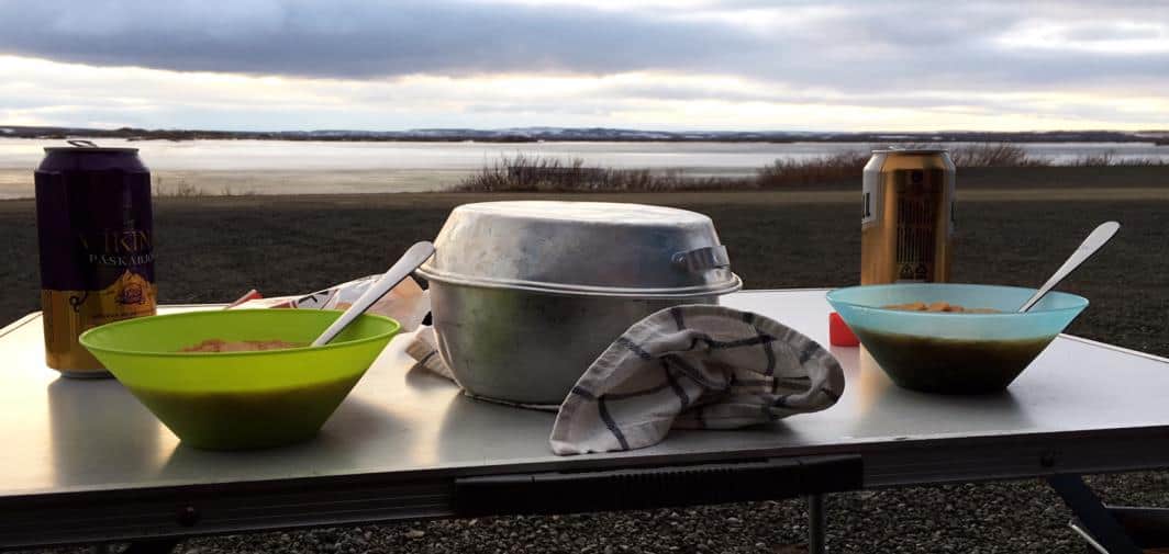 We had planned the winter clothes: big coat, scarf, gloves, cap, big sweaters… We had read that the most important thing was to protect ourselves from the wind: we confirm, the wind is the worst!! Our hiking boots were also perfect for going where we wanted by keeping us warm. For food, we have bought by advance freeze-dried dishes, a pack of pasta, a pack of rice, tuna cans, sauces, cakes … So no need to go shopping! (Well, we just bought duty free beers from the airport, think about it!)