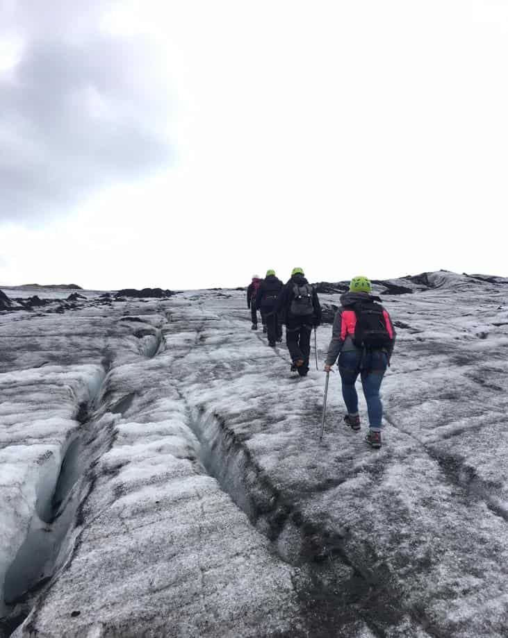 We were merited with a good dinner at the Black Beach: I finally tried a good fish & chips 🙂 On Saturday we had booked an excursion next to Skógar to hike the glacier of Sólheimajökull. It was really great !! We felt like we were walking on the top of the world!
