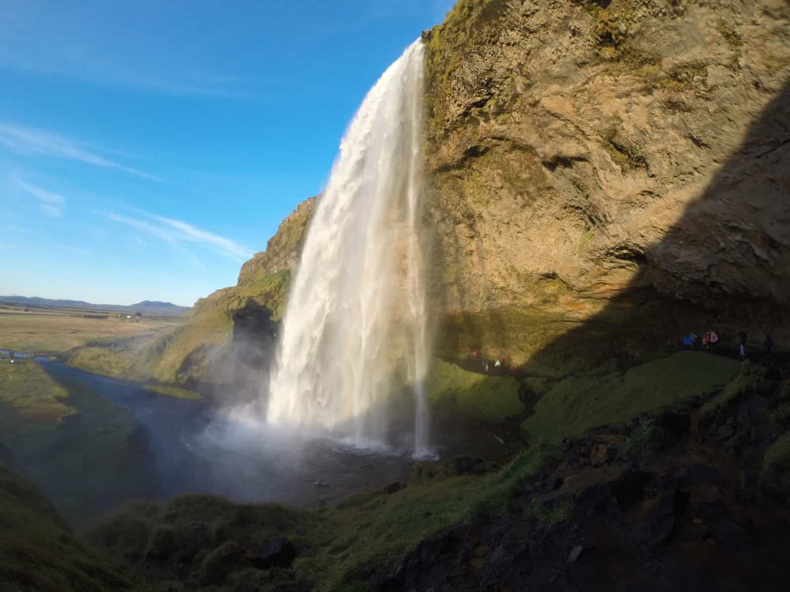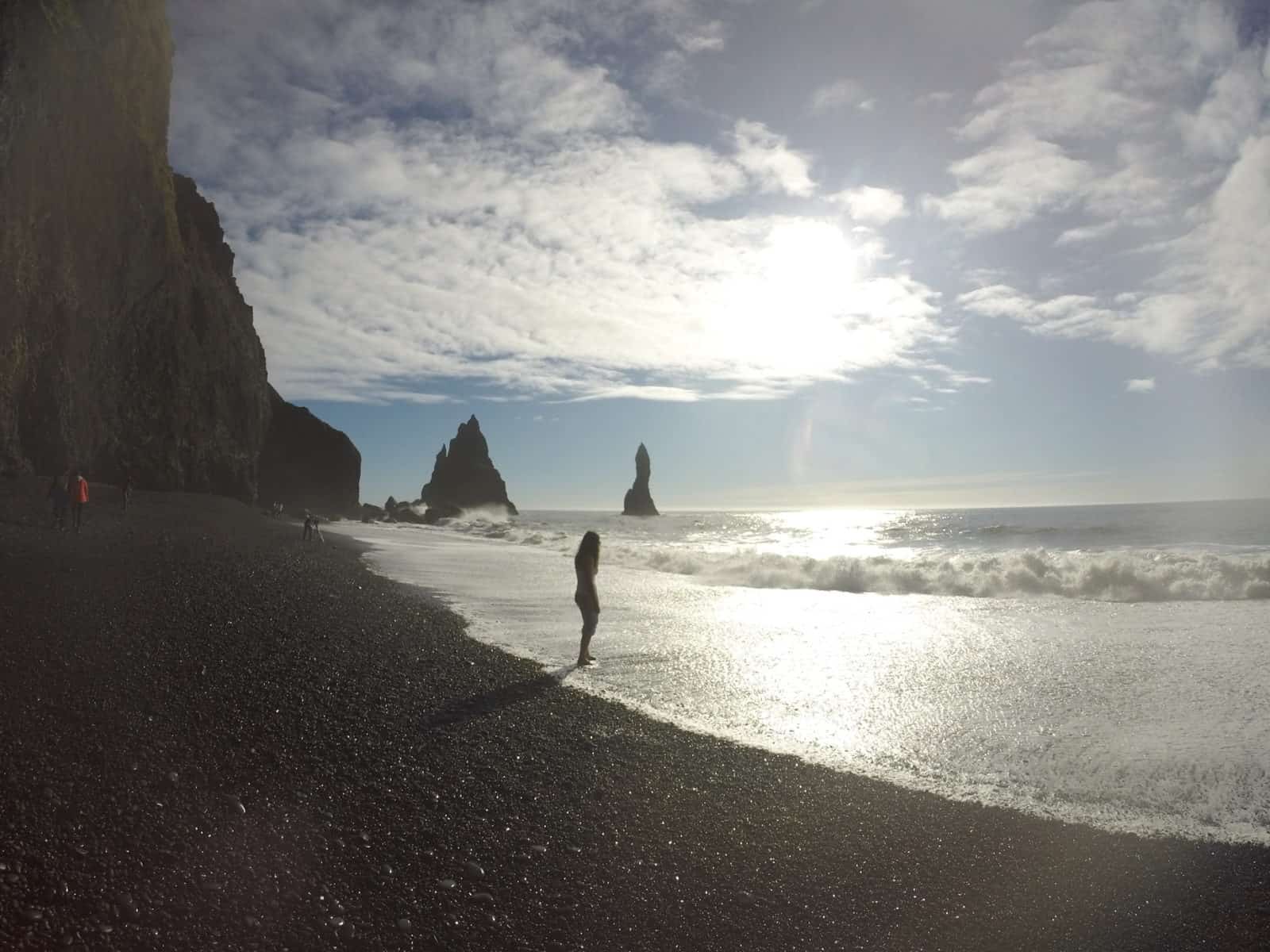 The next day, we got to see the nice black sand beach Reynisfjara. Apparently, the waves there are sneaky and treacherous, so you can’t swim, but we found it was beautiful and enjoyed it a lot. In addition, there were big caves and impressive basalt columns, this truly is a must if you’re heading to the south coast of Iceland. Another highlight of our trip was Seljalandfoss, a 65-meter waterfall you can walk behind.