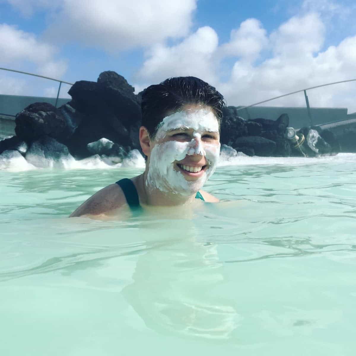 Dani in a mud mask (left) & Emily relaxing (right) at the Blue Lagoon