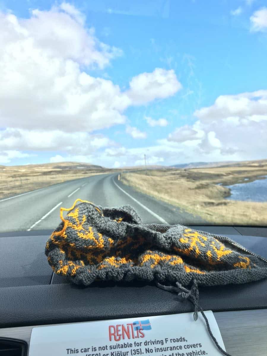 On our first day, we picked up the camper van in the morning, got ourselves situated, and decided to go clockwise around the Ring Road based on the weather forecast. Our first stop was the Wool Center in Hvanneyri, because Emily LOVES to knit—check out the sweater she’s working on! After parking right in front of the yarn store and then walking past it twice, we (although really just Emily) finally found ourselves in wool heaven!