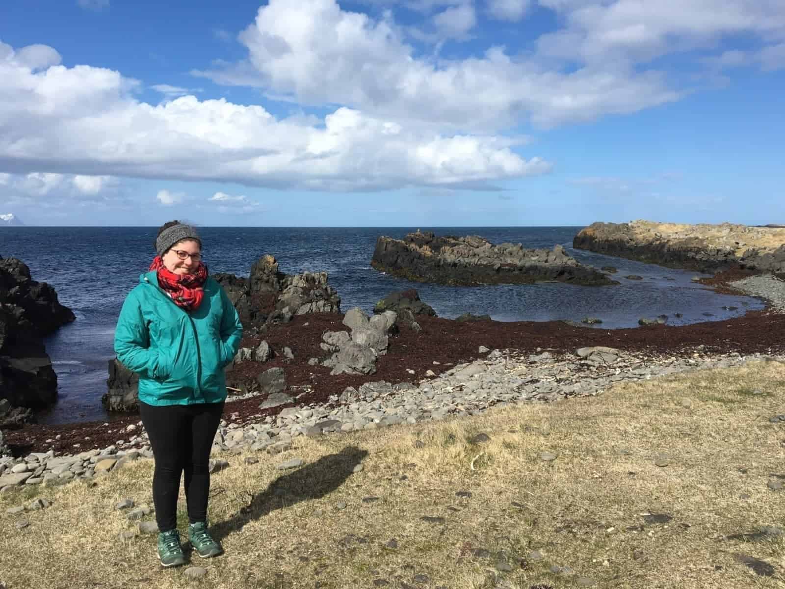 Emily at Hvammstagi–you can’t see the seals, but they’re there! We promise!