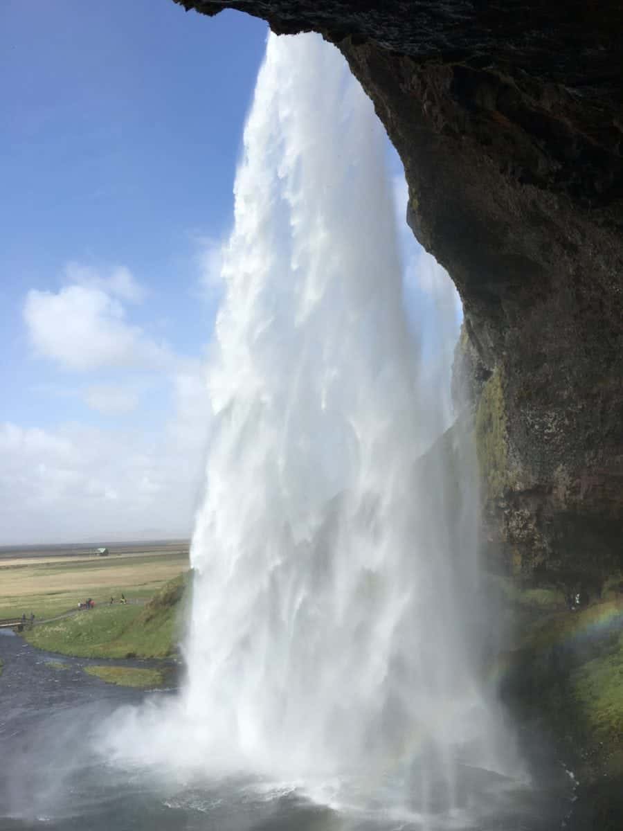 Two views from behind the Seljalandsfoss waterfall