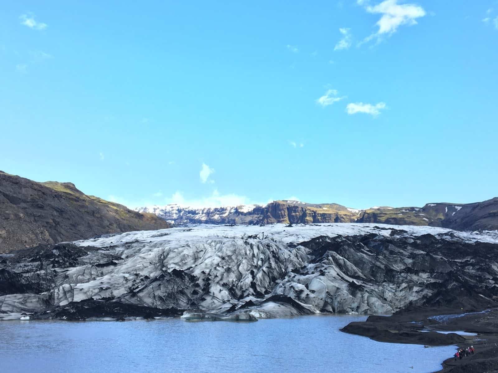 At the Dýrhólaey promontory, we were treated to even more gorgeous views of the rock formations as well as loads of birds! Puffins nest here, but we aren’t sure we saw many because they were in the cliffs far away, and it was such a nice day they were probably out fishing in the ocean too! After the two black sand beaches, we visited another glacier: Sólheimajökull, where we hiked out for one last view of the Icelandic glaciers!