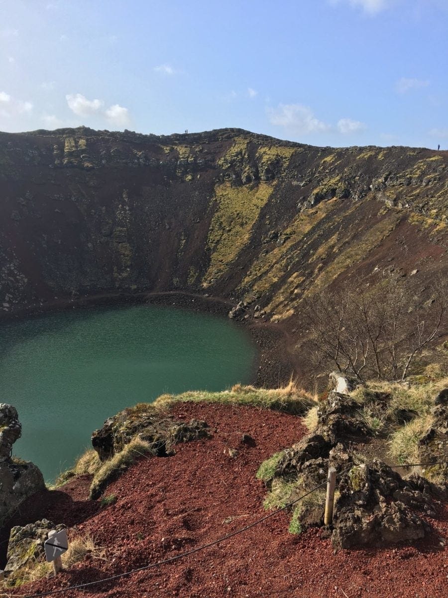 The rain had passed over night, and we woke up to some more sunshine just in time for our day in the Golden Circle! We packed up the van and set off towards some of the highlights of Iceland. Our first stop was the Kerið Crater, the “Tub,” with bright red walls and a gorgeous blue lake at the bottom. Then we went to Þingvellir National Park to walk between the continents and get some Icelandic history, learning about the Alþingi. We also hiked out to the Öxarárfoss waterfall at Þingvellir!