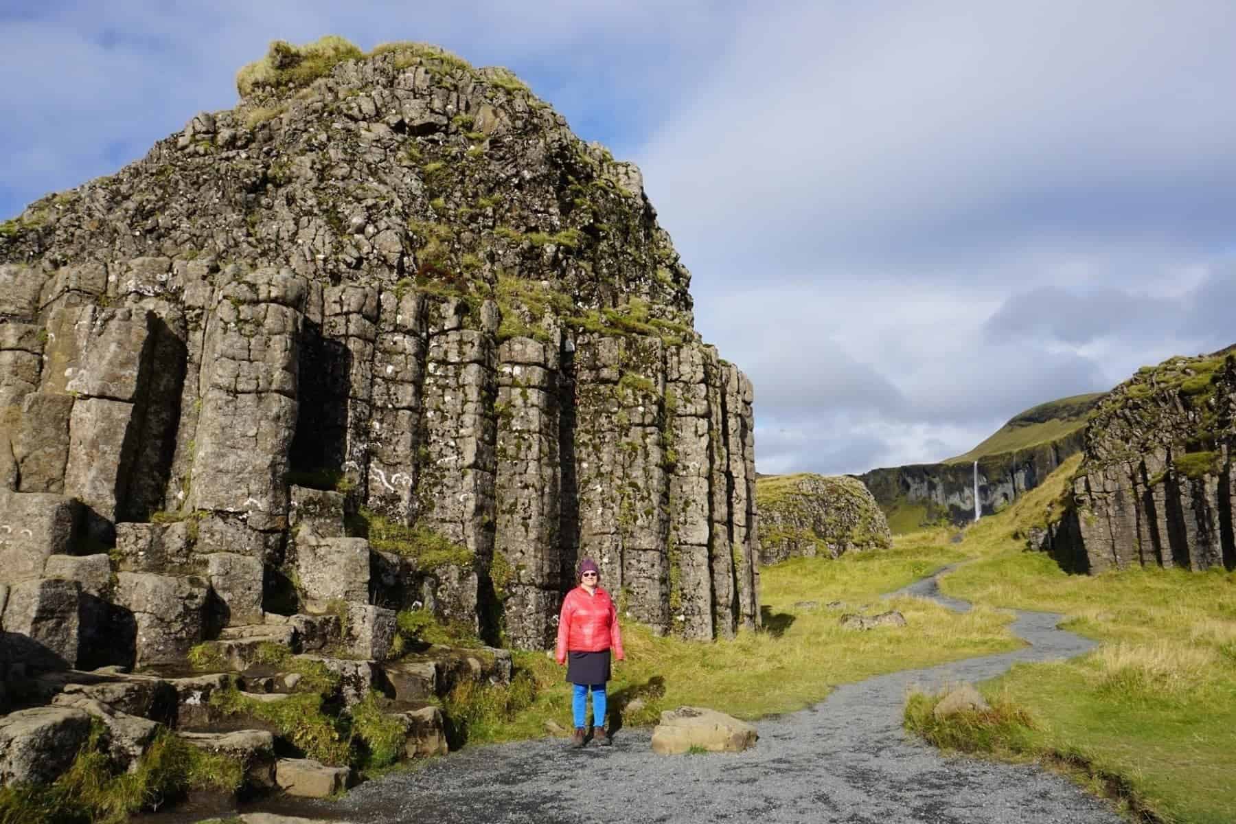 Day 10 Morning – Serendipity & Earth – Dverghamrar (dwarf rocks) and Foss á Siðu. Not far west of Vatnajökull National Park is this seemingly unexciting pull off. A short walk from above yields this mystical place known to be frequented by Gnomes, Trolls and Dwarfs. Can you see them peering out at you through the cracks in the basalt? A short stop and stroll at this location is recommended for those who enjoy stories and fantasy.