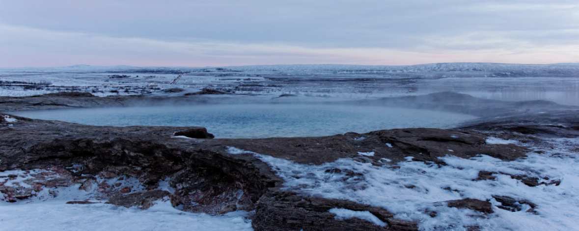 reliable. The surrounding field is filled with mudpots and other geothermal activity. An imposing arena, the contrast between hot and cold is undeniable here.