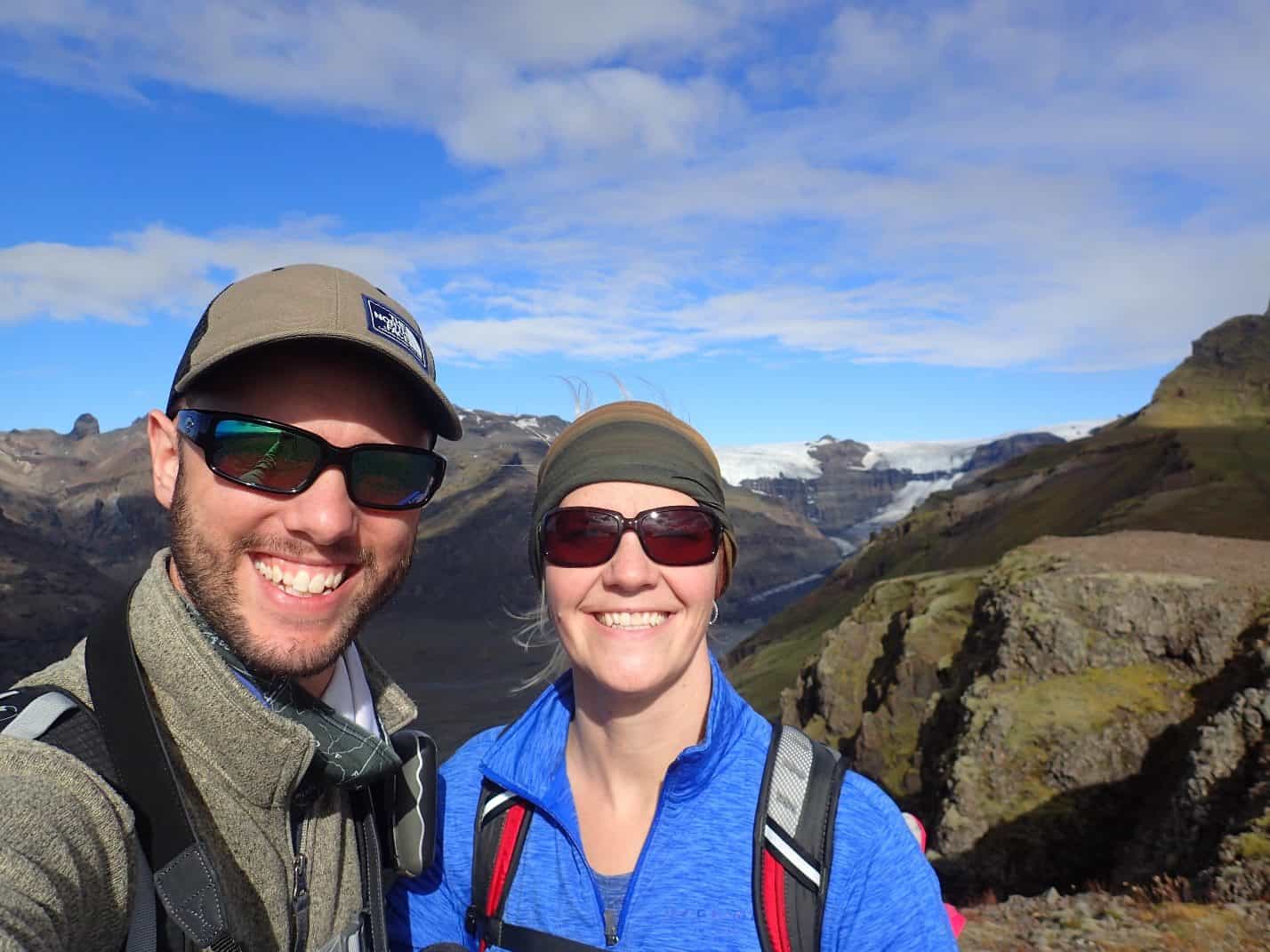 We decided to finally sleep in a little bit today. We woke up at 8:30am and hit the Skaftafell National Park trails at 9:30am. Since we had saw Svartifoss the previous day, we could take a different trail this day. We chose to take the Skaftafellsheiði loop which is supposed to be about a five or so hour hike (without going to the peak). There are several different paths you can take but we wanted to take a scenic route that would take us most of the day to hike. WE highly recommend getting a map. You can take a photo of the map at the base of the trails, but it is not complete. Additionally, when you are in the park the signs are not color coded like the map. We went on our hike thinking we would just follow the “red trail” but none of the signs were red. It seemed like all the different destinations started with an “s” so we had to stop and borrow someone’s map after we started our hike.