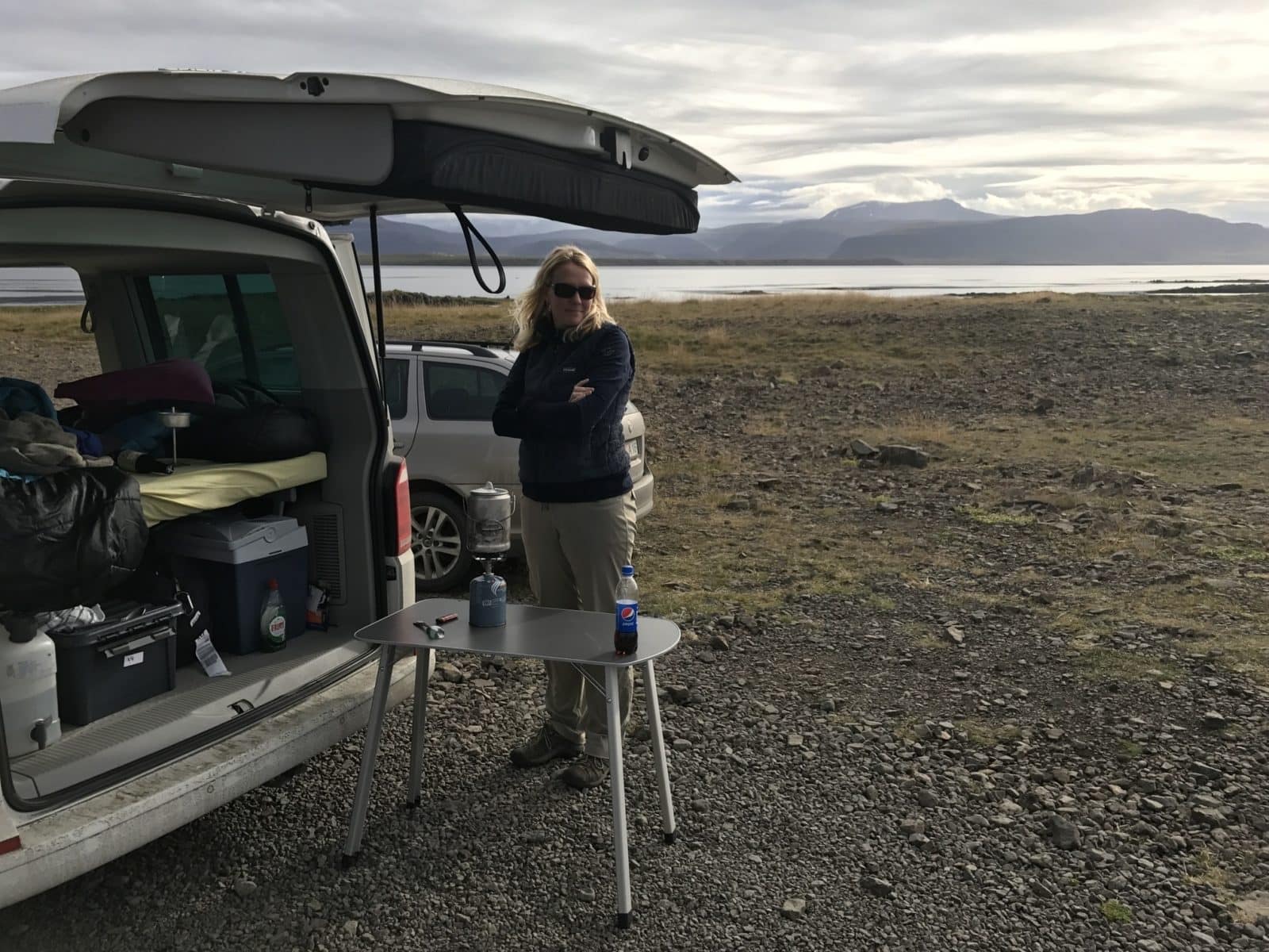 We left the ship and headed towards Kirkjufell, which was approximately 4.5 hours away from Garðar. Kirkjufell is one of the most photographed mountains in Iceland and something we were really looking forward to seeing. Based on other people’s photos, it is probably the most photographed because of its unique shape, but also probably because you can also get some small waterfalls in the foreground of your photo. We wanted to get here before the sunset to get some good photos of the falls and mountain with the sun setting. It was going to be tight though and the curvy roads were not going to make it any quicker. We had to stop to get some lunch/dinner. We pulled over along the coast to get some photos and cook our freeze dried meals. The camper van continued to work out perfect with the table and stove that came with the rental.