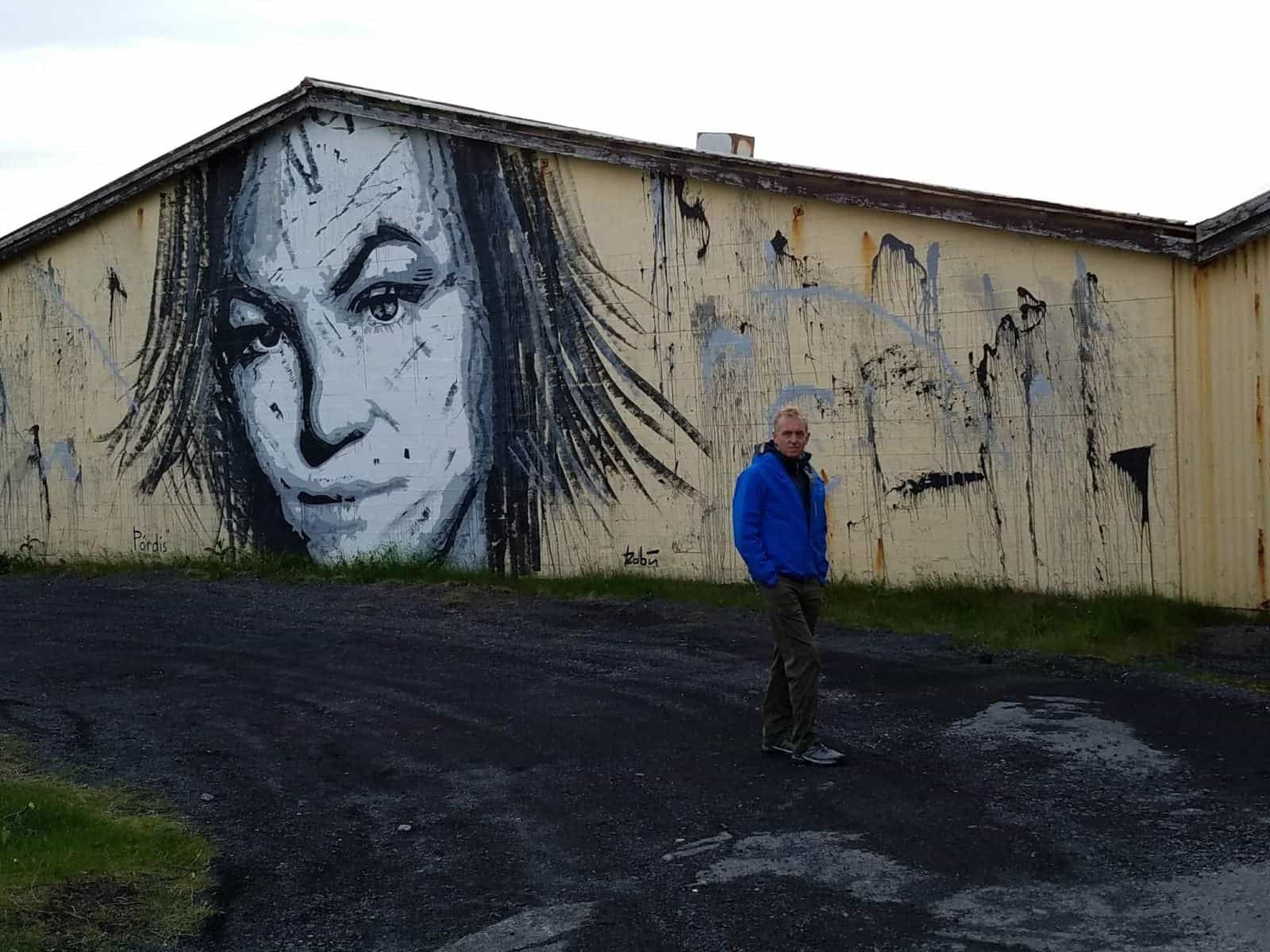 A sign in Hellissandur, population about 800, read “Welcome to Hellissandur, wall art capital of Iceland.” Sure enough, we soon came upon a vacant fish cannery whose walls have become a canvas for talented muralists. Across the highway we discovered the most beautiful soccer pitch in the world, a rectangular green carpet of plush turf surrounded on all four sides by a two-meter high reef of black lava.