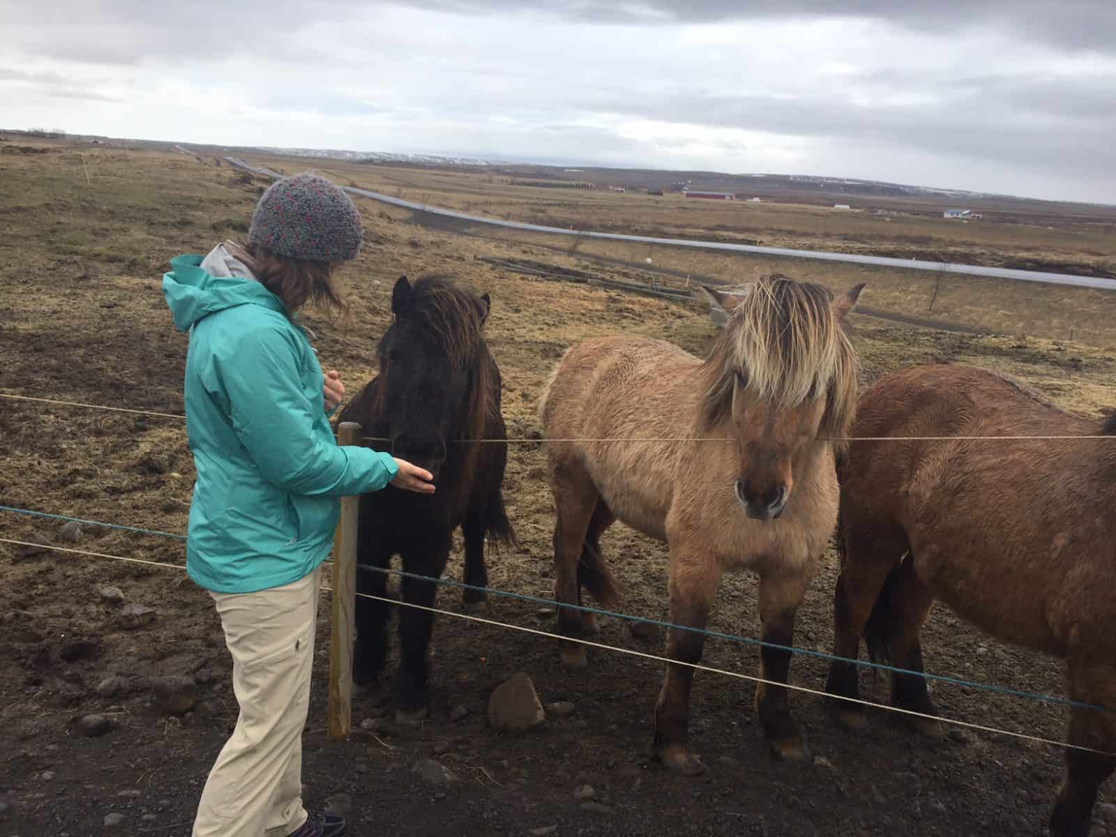 The first couple of days in Reykjavik and the southwest of Iceland made us feel as if our van was the coziest place on Earth, as the cold temperatures and sideways rain pelted us from all sides. It was a welcome respite as we camped in the city and then explored the Golden Circle. A chance to feed Icelandic horses “candy” due to the generosity of a lovely rancher made for a picture-perfect moment for me (while missing my puppy at home). The horses were kind and gentle, but don’t climb in their pen—this is still private property after all.