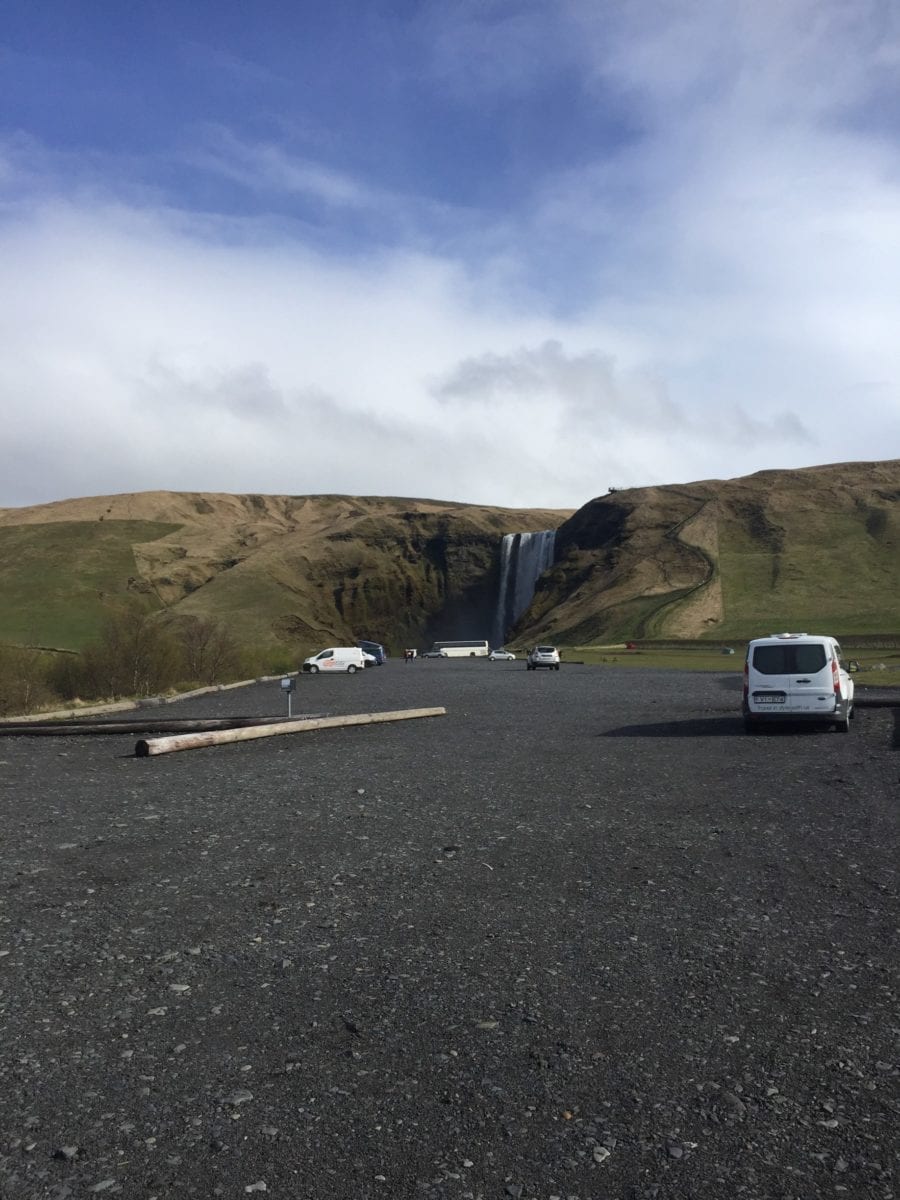 Perhaps our favorite day was waking up to this giant waterfall at Skógar, the view from the back doors of the van couldn’t be beat. The campground was somewhat rudimentary, but being able to check “see rainbow in waterfall spray” off the bucket list at 8 am was worth it! That day we saw more waterfalls than we could count, as well as the gorgeous beach at Reynisfjara.