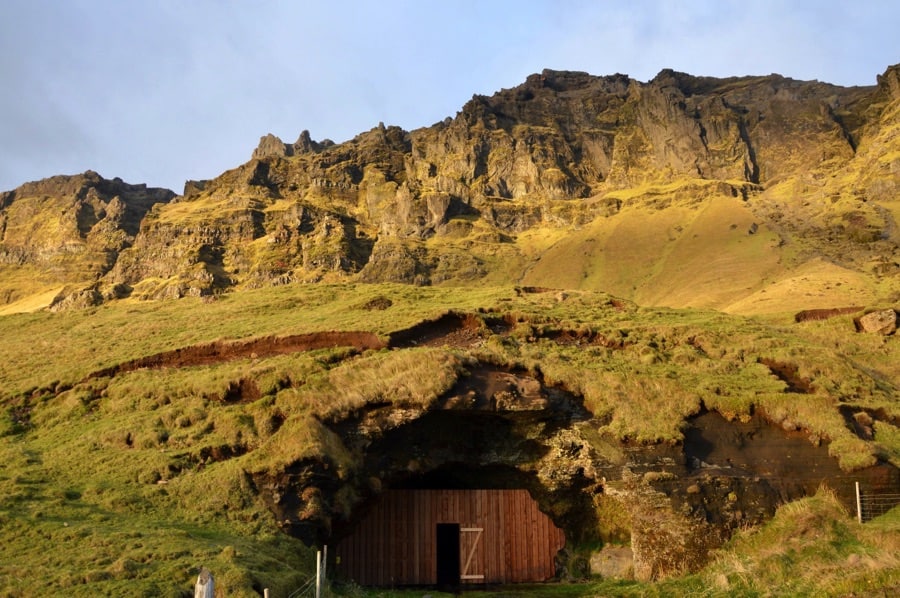 outdoor swimming pool Seljavallalaug we had the possibility to visit a cave hidden on the side of the mountain with a wooden fence in front of it. If it wasn’t for another car parked there we would not have found it. Try to find it and just stop here for five minutes. The cave is so breathtaking beautiful. Everywhere you look you can spot small green ferns, it’s like a cave from a fairy tale.