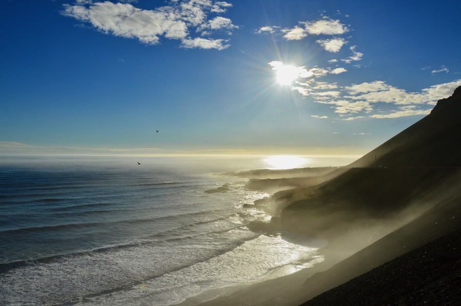 This place is one of the finest parts of Iceland; everywhere you look you can see big pieces of ice that fell down from the nearby glacier. It’s only a 5 minute walk from this huge lake to the other side of the road, where Diamond beach is. You’ll immediately see why they called it this way. The black beach is studded with diamonds of ice, large and small. We had never seen such a beautiful place before, each diamond different from the other. Despite it being quite a cold day, it couldn’t have been any better visiting this beautiful location. On your journey through Iceland, you should really see it.
