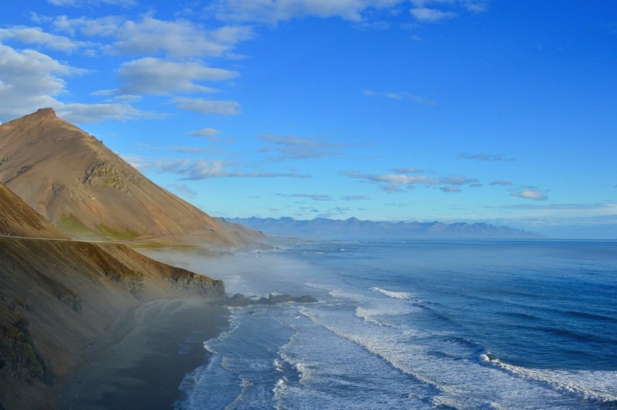 A huge tourist attraction is Reynisfjara and we can see why. It has huge basalt columns with such straight lines that they seem unreal and man-made. Even better is reading the story about the pillars in the water. Definitely check this out when you go here! We have also made a quick stop at Dýrhólaey, which shows a pretty good view. It’s not the most beautiful sight we’ve seen on our trip, but it’s worth the stop while you’re in the area.