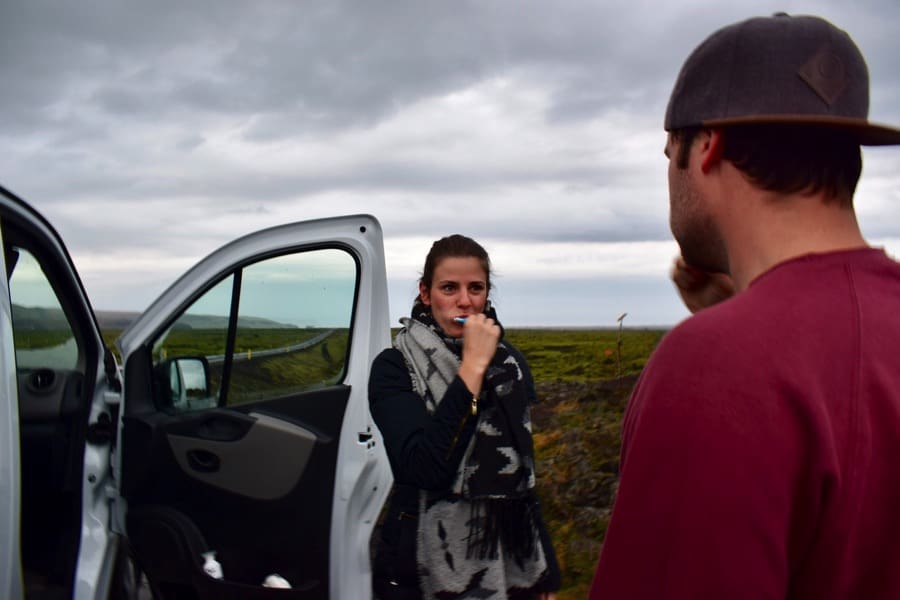 The bed was very nice and was easy to build from seating to bed. We were with two girls and a boy and there was more than enough space to sleep comfortably. In the van, you will find sleeping bags and there were even three fleece blankets that made it even cozier and warmer! The van is very well heated, so there’s no need to be cold. The first night we didn’t leave the heater on, because we were scared the battery of the van would be empty by the time we would wake up. We woke up as cold as ice(land)! The next night we decided to leave the heating on, which turned out to be no problem at all, so don’t worry!