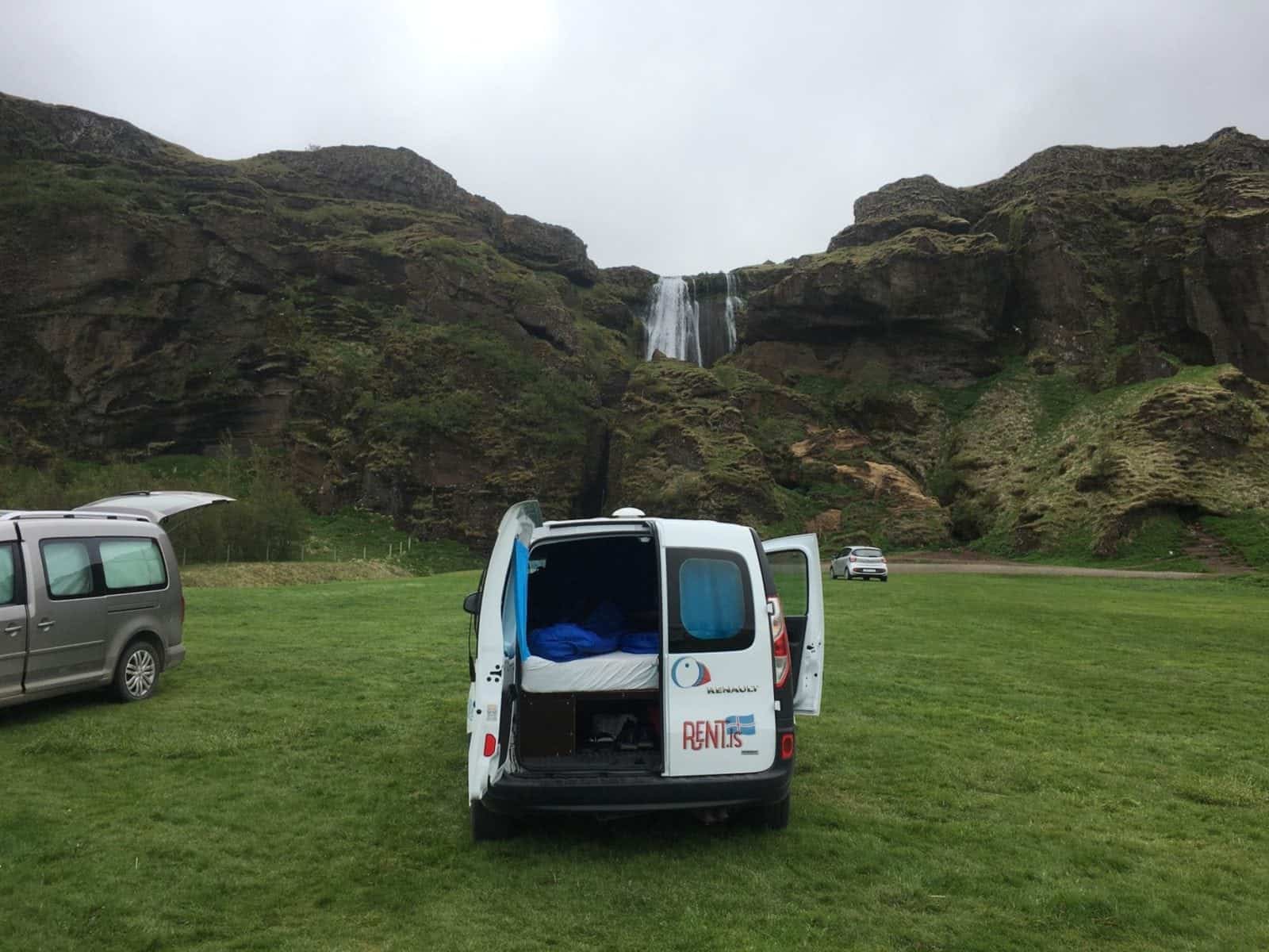 We then drove to Seljalandsfoss – another impressive waterfall where you are able to walk all the way up and get to stand behind the waterfall. And the result was stunning and very very wet…. We spend the night at the camping site just next to Seljalandsfoss so our view from the camper van was not just this waterfall but also another smaller waterfall right in front of us. What a great morning view.