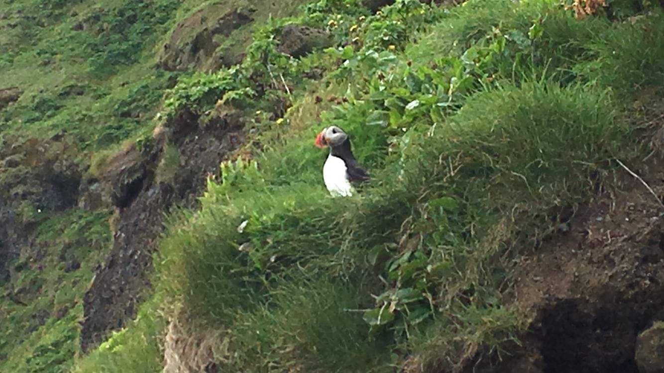 We travelled further on to Skógafoss which is supposed to be the most beautiful waterfall on Iceland but it takes a long time to climb all those steps all the way to the top. Our legs got really tired. Then our well planned trip took us further on to Dyrhólaey and then to the village Vik – with the famous black lava sand where we finally and very unexpected saw Puffins and so very close by. They practically sat right in front us and were so very patient with us trying to take some great photos – funny little creatures that looks so sad and are a whole lot smaller than we imagined. You don’t think they are able to fly when you see them but of course they can. And when they do fly you can recognize their way of flying from a long distance.