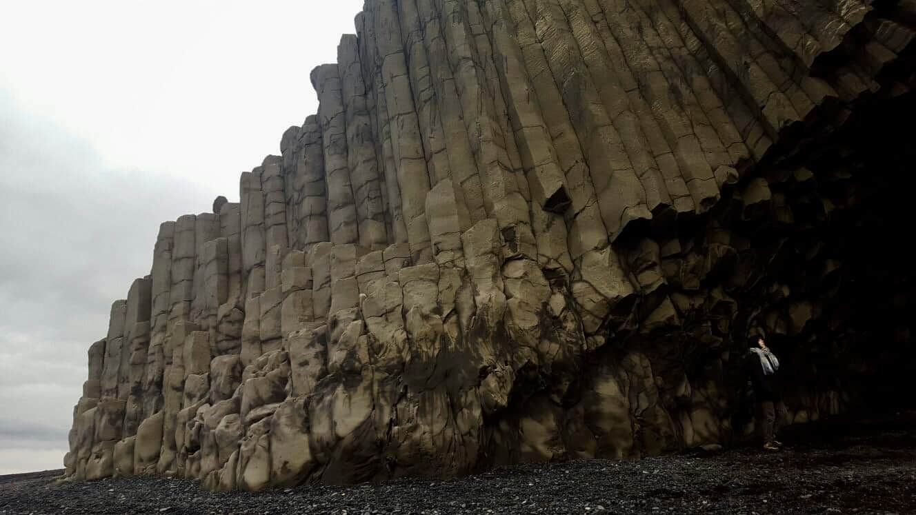 Day three, we woke up to a sheep starring through our camper’s window. What better way to start our day other than having breakfast with true locals. All excited about another day in windy Iceland we walked straight to the black beach where once again it felt as if we had arrived at a movie set. Dark clouds were hanging above the rough see, while the waves where crawling up the black beach and hitting against massive rocks. Once again, we stood there in silence wondering how nature could be so dramatic and yet so dramatically beautiful. The scenery would not have been more perfect, being situated at a cliff, which is hard to describe, but should rather be experienced, or for now be seen on a photograph.