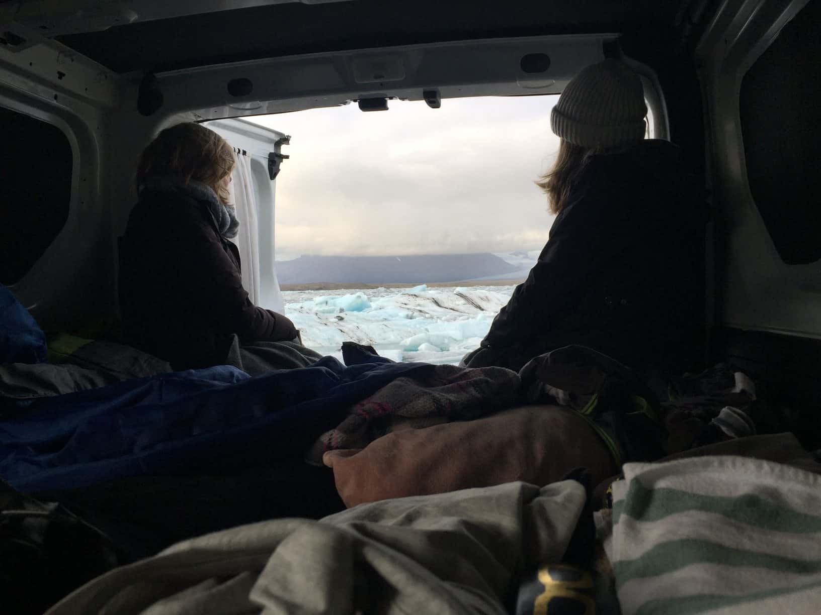the ring road, about to put a few kilometers behind us before dawn. We totally locked out on our frst night in Iceland! Only a few hours after landing we excitedly stopped our camper to have a good look at the northern lights. The sky was lit up by green and purple lights while we were casually brushing our teeth. Our first night on the road began and after a busy and beautiful day we fell asleep within seconds.