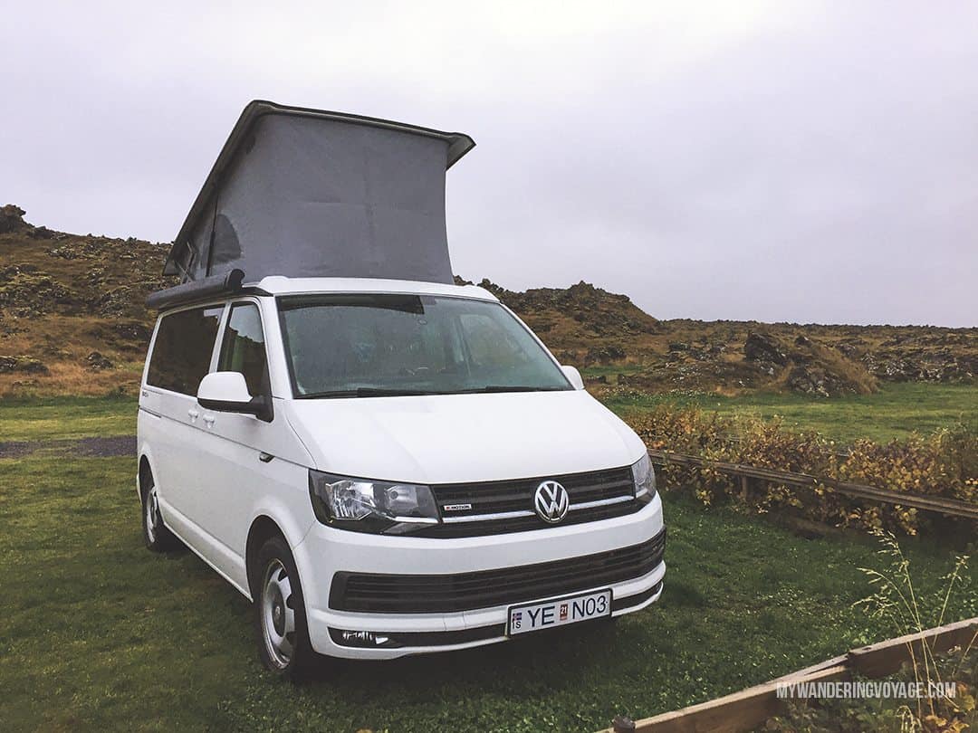 We rented from Rent.is, one of many companies that rent campers. There are a few things we considered when renting from Rent.is. First, they had a van that was automatic (very important, as only one of us could drive stick-shift), it slept three people comfortably, and it came with “all the fixings” – sleeping bags, blankets, pillows, camp stove, plates, cutlery, cooler and chairs. It also had lots of room for our stuff and last, but certainly not least, WiFi!