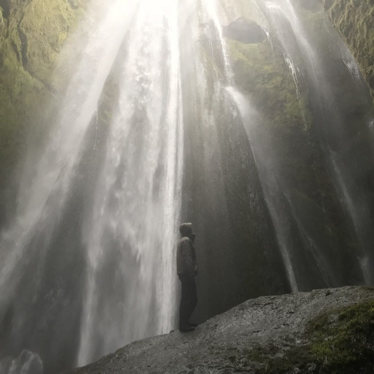 - Gljúfráfoss, on the left of Seljalandsfoss. Iceland is full of spectacular waterfalls. And when we thought that we’ve seen the most beautiful ones, we still became amazed again and again. One of our favorites, was a small waterfall inside a kind of a cave: Gljúfráfoss. To get there we had to cross a tight entrance, stepping our feet in small rocks in the middle of the water and embracing the rock on our right. Once there, we climbed a big rock just next to the waterfall and looking up… WOW! We felt so alive 😀