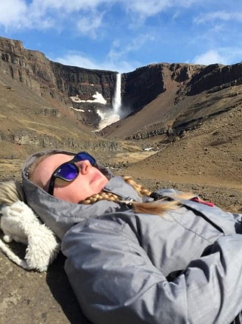 Started early in the morning since the weather was fine. And yes, there is nothing like waterfalls when there is a blue sky and sunshine! So, we went up for a little hiking trip at the colorful Hengifoss. The sound of the highest waterfall on Iceland and the sun was a perfect opportunity to have a break!