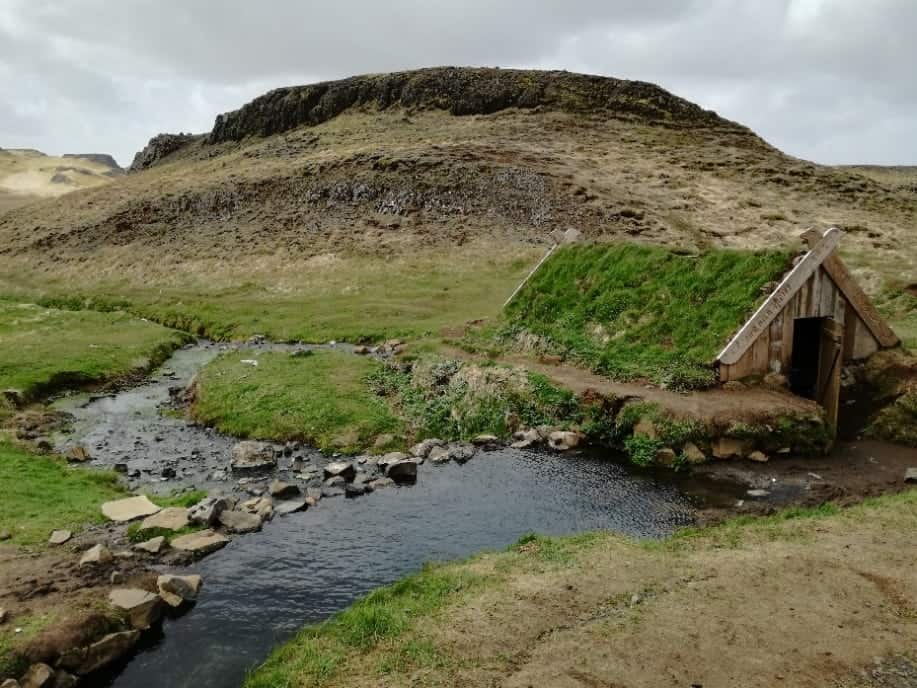 In contrast to the day before we really wanted to undress this day! We went to Hrunalaug hot spring (natural spa) close to Flúdir. We had it for ourselves and it was quiet so we could hear the steady stream of warm and comforting water trickles into the approximately 1 m2 tiny pool.
