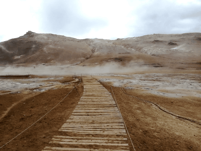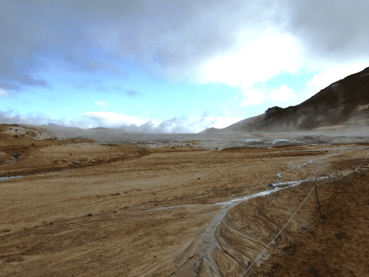 Ok, let’s be honest. Not a gourmet lunch break. But rye bread is always a win! On we went. Next stop felt like walking on the dead road and the smell is almost the same at Námafjall Hverir.