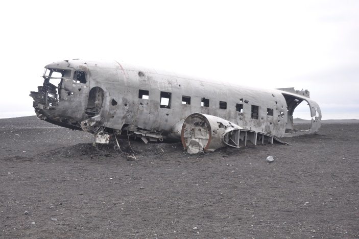 The famous plane wreck in IcelandNow on to something completely different and the crash site at Sólheimasandur. It has to be said, that this is a considerable distance from the parking places at the side of the road and those parents we saw, having to carry young children as they made their way TO the site, had an unenviable task in the return journey. But, bit was it worth it and continuing on down to the seashore, gave us our first real experience of the black beaches of Iceland. Quite magnificent.