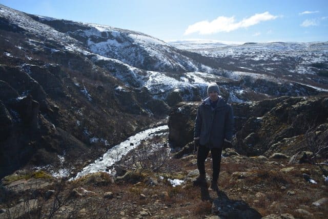 As we continued our way south we decided we would head to Þingvellir National Park but on the way we wanted to stop at Glýmur Falls back in Hvalfjörður on the way. We put our fate in the GPS, which it took us through a relatively sketchy gravel mountain road (thankfully not an F road), providing outstanding sites in the snowy mountains but ultimately was not faster than the regular highway. We did make it Glýmur Falls and made our hike towards the Iceland’s tallest waterfall. As we were in traveling in April the fallen tree log that allows you to cross the river to finish the hike up to Glýmur was half submerged under the river and covered in ice. As the river was too fast and too high to cross we hiked up the cliffs on the side we were on until we got a partial view of Glýmur. Even though we did not see it for its full view the panoramic from where we were standing was incredible in its self. No matter what, Iceland provides a reward for your efforts.