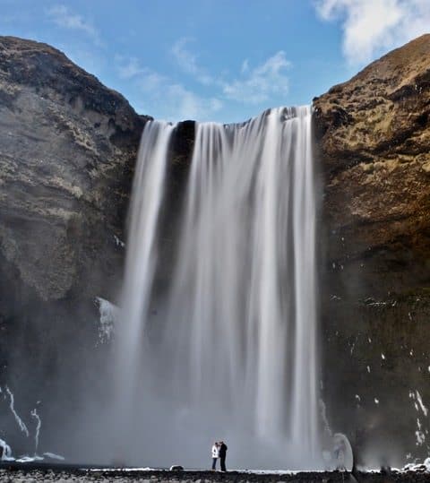 After our long walk back from the plane site we headed to Skógafoss waterfall, one of the highlights on a south coast road trip. You can climb up the many stairs to the top to take in another angle of this waterfall, and hike a trail following the river that supplies the water. You can also walk down to the base of the fall and be misted by its crashing water.