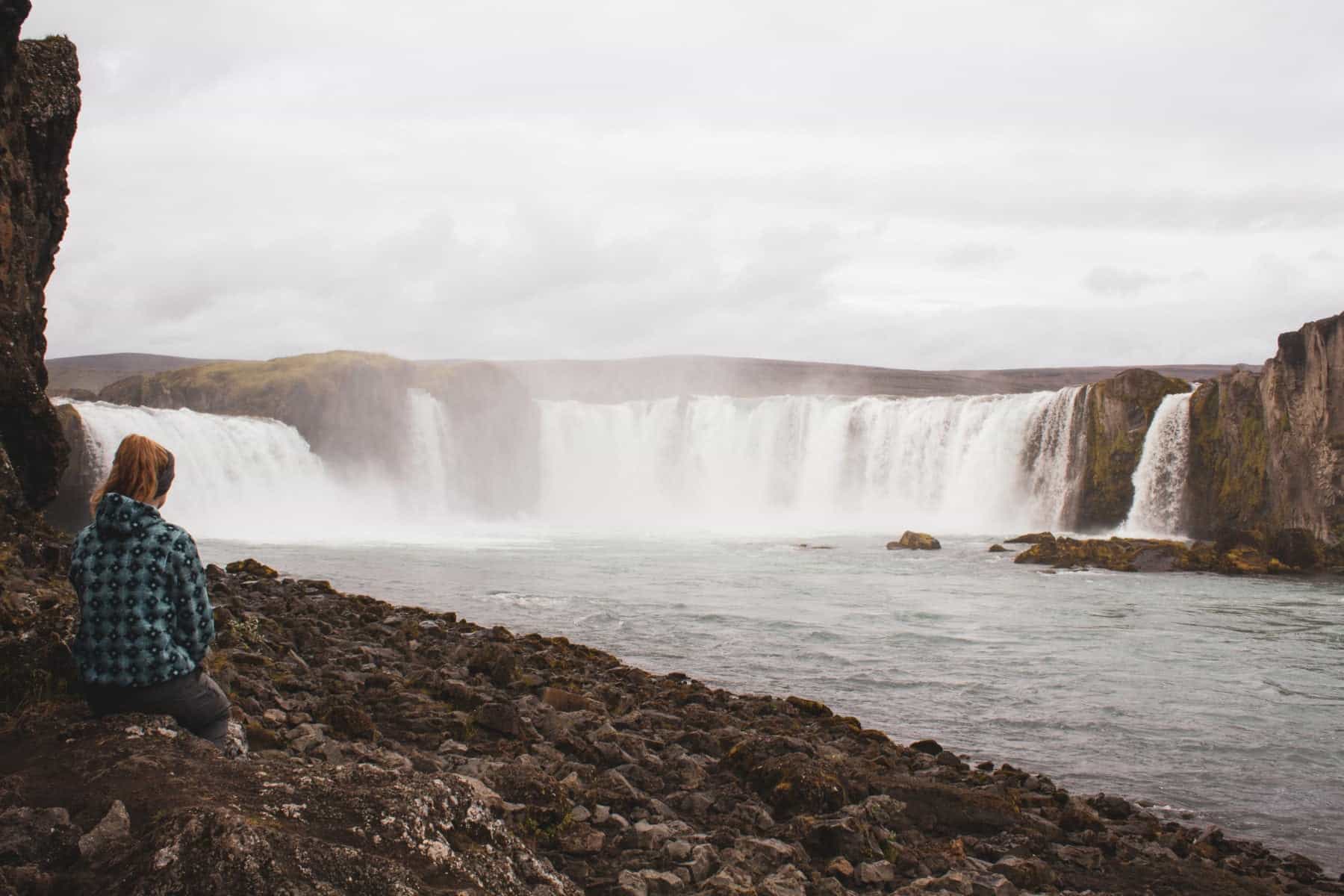 The next morning we got up early and headed to Goðafoss. This waterfall reminded me of Niagara Falls, with its horseshoe shape and rushing blue water. It was awesome for getting photos and there were a few other smaller waterfalls in the area that made for nice photos as well.