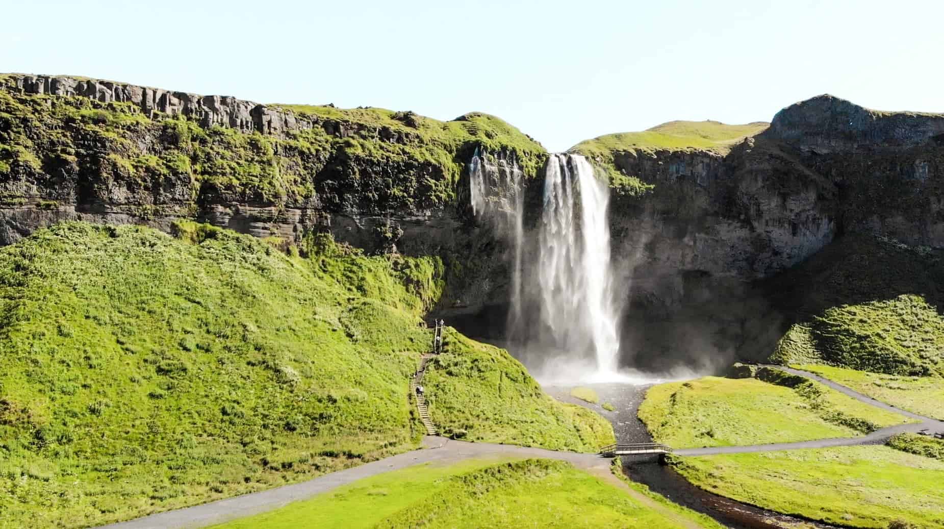 Next, we stopped at Seljalandsfoss, arguably one of the most beautiful waterfalls we saw on our trip. Walking behind the falls was amazing and I can confidently say nothing beats cold waterfall mist hitting your face. We spent so much time here taking photos and drone footage, just so we could remember it long after we left.