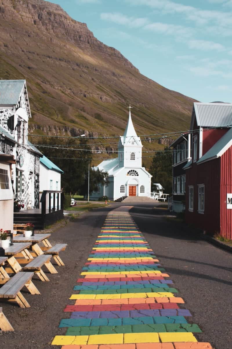 The next morning we woke up and explored Seyðisfjörður. There’s a lot to see here and I don’t think we managed to see it all, so give yourself a few hours to wander around. The highlight for me was the adorable blue church with a rainbow painted across the street to its doors. Waking up to take those photos was the perfect way to start the day.