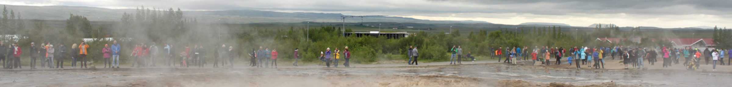 Confronted with flashlight storms, gruesome trekking garments and dangerously pointed umbrellas of the now visibles, their immediate impulse was fleeing the unwelcome company. Just in that moment Strokkur erupted underneath them and spat them far into the air.