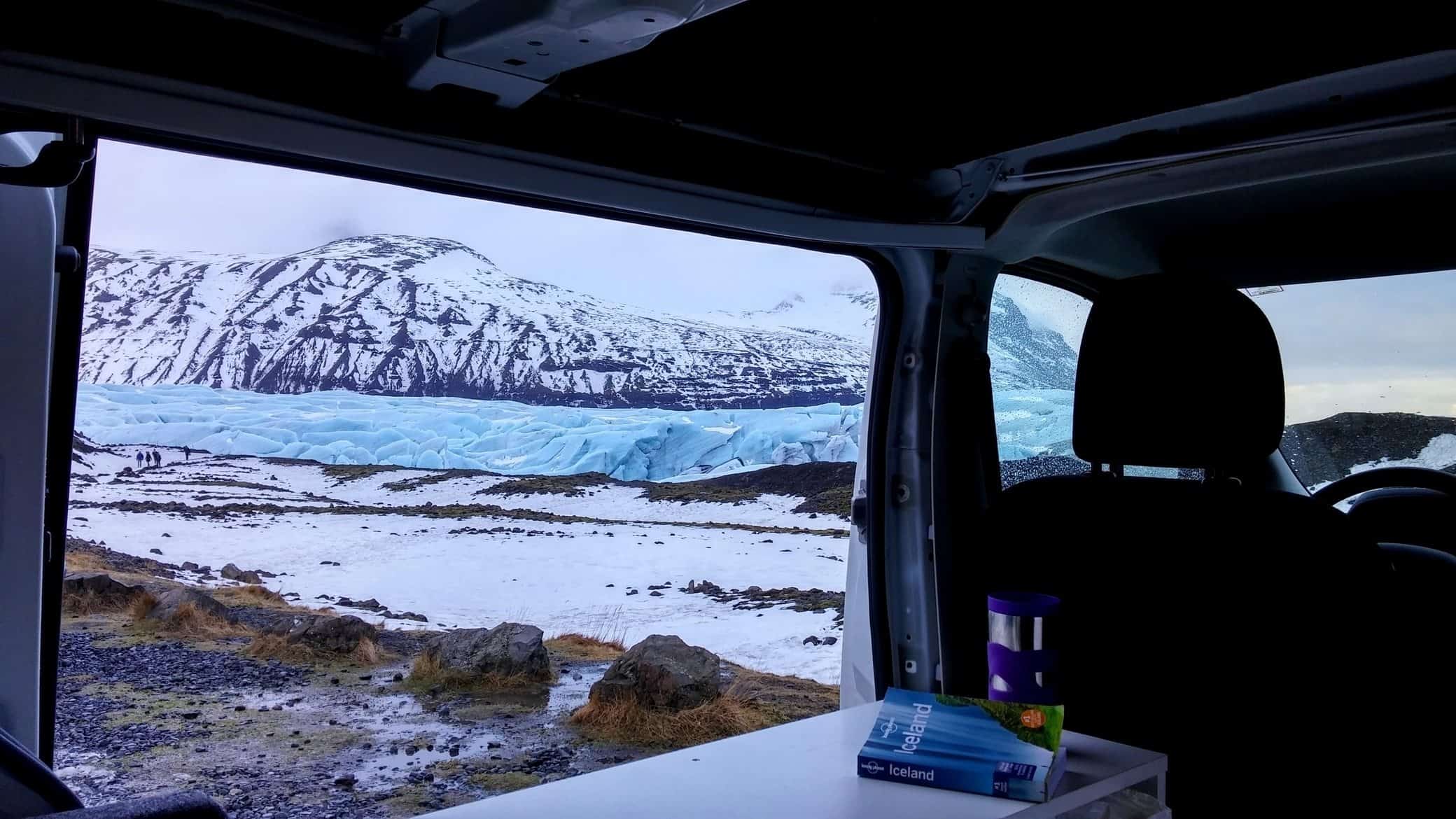 - Plan your route: Over breakfast we planned our route for the day using the Lonely Planet travel guide. Plus, we checked Google maps on what’s coming up on our route because there’s unlimited WiFi in the van. If you’re worried about driving on snowy roads in the winter time, check if roads are safe at Road.is – we didn’t have any issues driving around in March but some roads were blocked so we had to plan our route around them. The van comes with studded winter tires so driving in the winter is much easier and safer than it would have been back home.