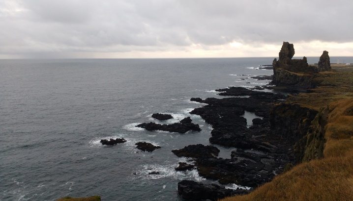 black sand beaches and odd rock formations, then the Snæfellsnes National Park and sleep in a small town in the north of the Snæfellsnes Peninsula, Grundarfjörður (known for being close to the most famous mountain in Iceland, Kirkjufell). We had installed the Veður app (