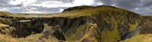 We kept driving, stopping for numerous photos and got to Jökulsárlón, a stunning glacier lagoon. We spotted seals and “calving” which is when ice from icebergs or glaciers break off and fall into the water – a sad but majestic sight and sound! More driving later we got to Fjaðrárgljúfur Canyon – a majestic sight of stunning rock faces with clear, icy blue/green water snaking through it as far as the eye could see. There is an 8km track that more intrepid travelers can walk, but due to being short on time we were just grateful we got to see any of it at all, before heading off.