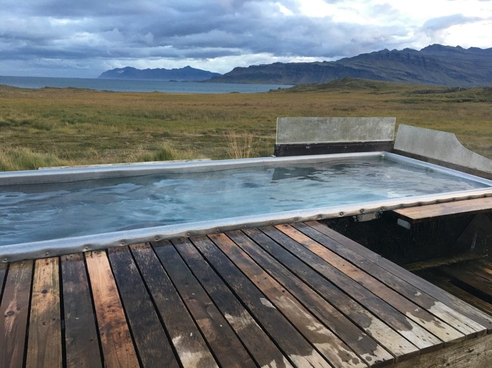 We kept driving along the South Coast for the remainder of the day and ended up in Djúpivogur for the night. Djúpivogur is a really small town with tons of character on the Southeast coast of Iceland. The campsite was small but that was okay because this is one of the least traveled parts of the country. The roads in this part of the country are wide open and completely free of tour buses. That evening we heard about a local hot spring that isn’t on the usual “hot spring map”. We found it with only three other people in it. It ended up being a large metal tub with a wood deck around it fed by natural hot spring water. It was really unique to me because it was just in the middle of a field with no markings on the road, it didn’t belong to any hotel, it was just for the pleasure of whoever had the good fortune of hearing about it. The cherry on top – it had an amazing ocean and mountain view.