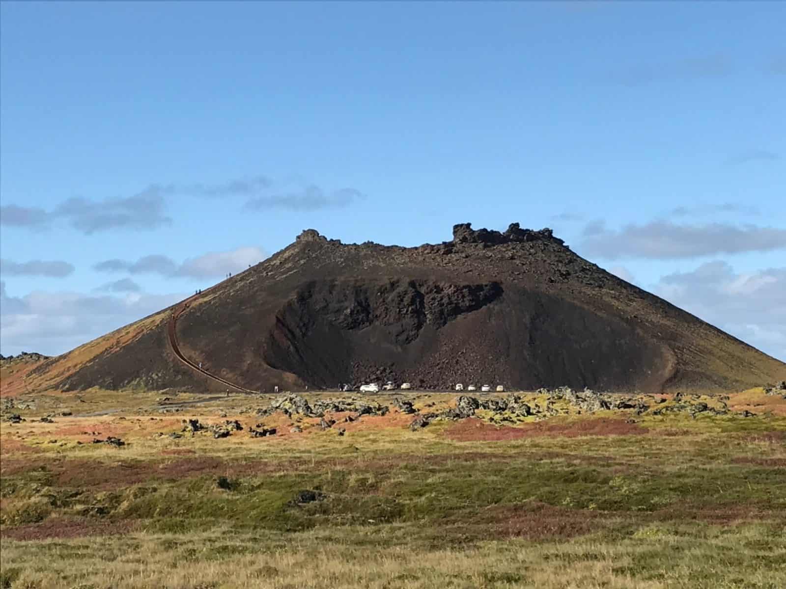 My husband David and I landed at 5 am in Keflavik on Thursday Sept 21st and picked up CC. Rather than waiting around in Reykjavik until the grocery store opened at 11, we went straight to our first stop on the Golden Circle, Þingvellir National Park. Here you can walk down to Silfra, the fissure between the continents of North America and Europe, and watch brave souls snorkel or scuba in the freezing water. We stopped at the BÓNUS grocery story in Selfoss to get groceries for our trip and then headed to Kerið crater. A nice trail lets you walk around the top and also the bottom.