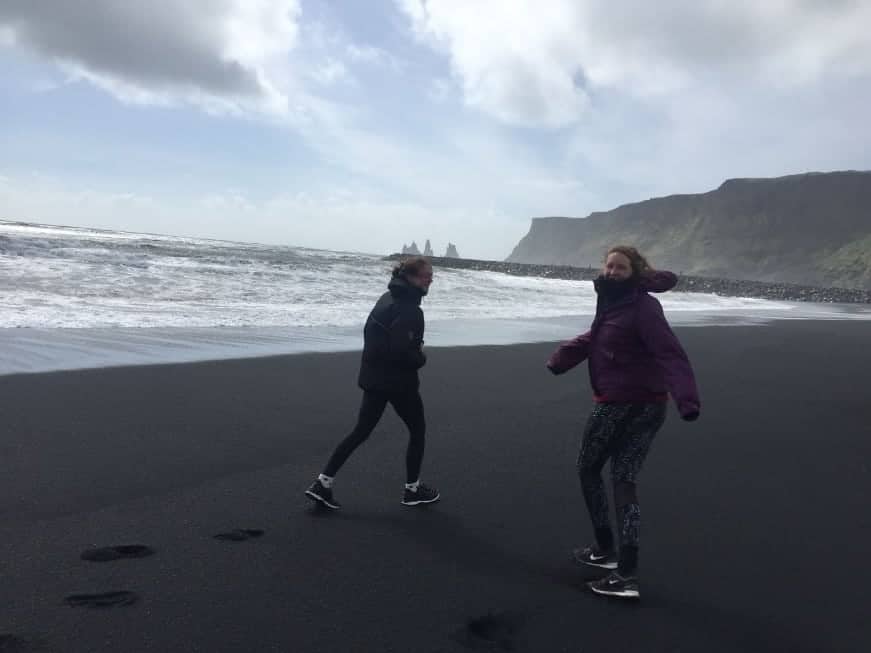 We awoke on day 3 to heavy rain and strong winds but…it was royal wedding day! We set off further along the south coast with the goal of visiting Jökulsárlón after a late breakfast and a trip to the Vik supermarket. By lunchtime the weather was really quite bad, so we decided to pull over on route 1 into a lunch spot, and live streamed the royal wedding, stopping just in time to see the bride arrive at Windsor Castle in her dress! We headed back on the road after lunch and the main ceremony, with the sun coming out just in time for our arrival at Jökulsárlón, a beautiful glacial lagoon. We all agree that this was our favourite part of Iceland and well worth the trip! As we left, a rainbow came out, leading to this beautiful photo below of our camper van! We headed back along the road we had just come towards Svinafell campsite, our favourite of all we stayed in, due to its peace, good facilities and cheap prices!