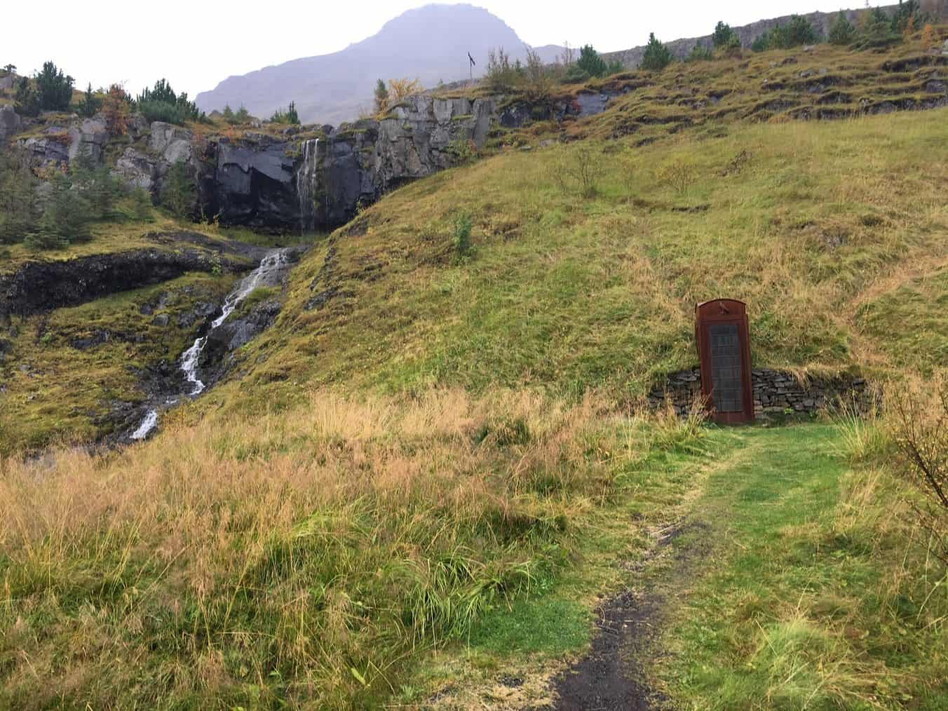 Phone booth on hill just past Seyðisfjörður.