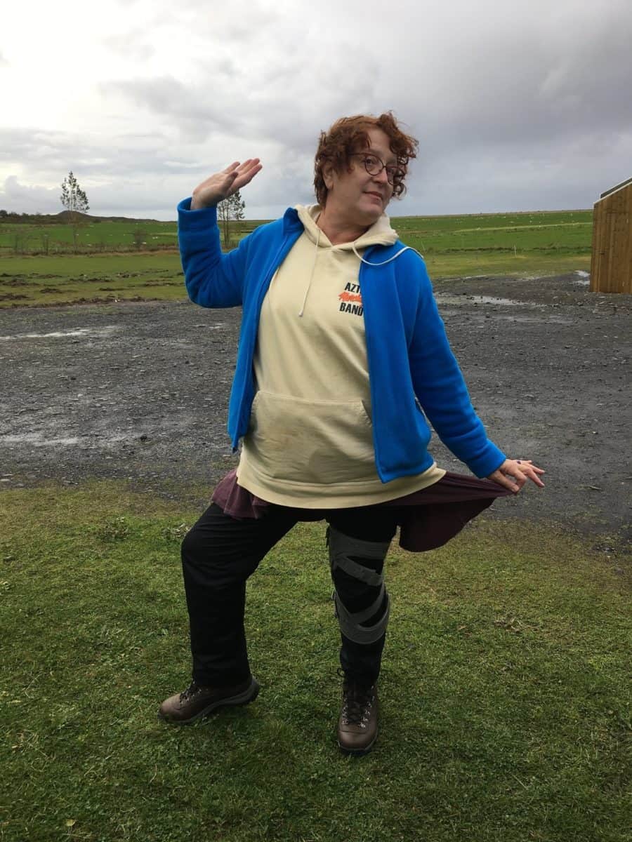 The rain- often horizontal due to the ever-blowing winds, was pretty much relentless. We were prepared to bundle up! We wore several layers at once: long sleeved warm shirt, pullover sweater or hooded sweatshirt, fleece jacket and a hooded rain jacket. As needed, gloves, scarf and hat. Pants were either jeans or long stretchy yoga-type, topped with a protective layer of waterproof pants, which, happily I had found in the US for about $15 a pair for each of us. We did not need to buy the expensive super warm ones; these windbreaker-type material ones were GOLD! DON”T FORGET HIKING BOOTS! And a pair or two of hiking socks. Your feet will stay toasty and dry. Mud will not be something to fear.